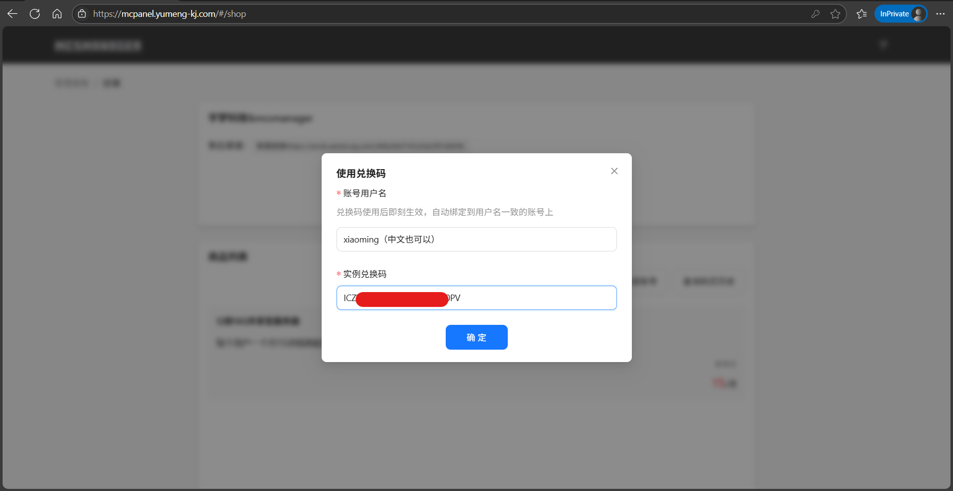 点击使用兑换码,填入用户名和兑换码