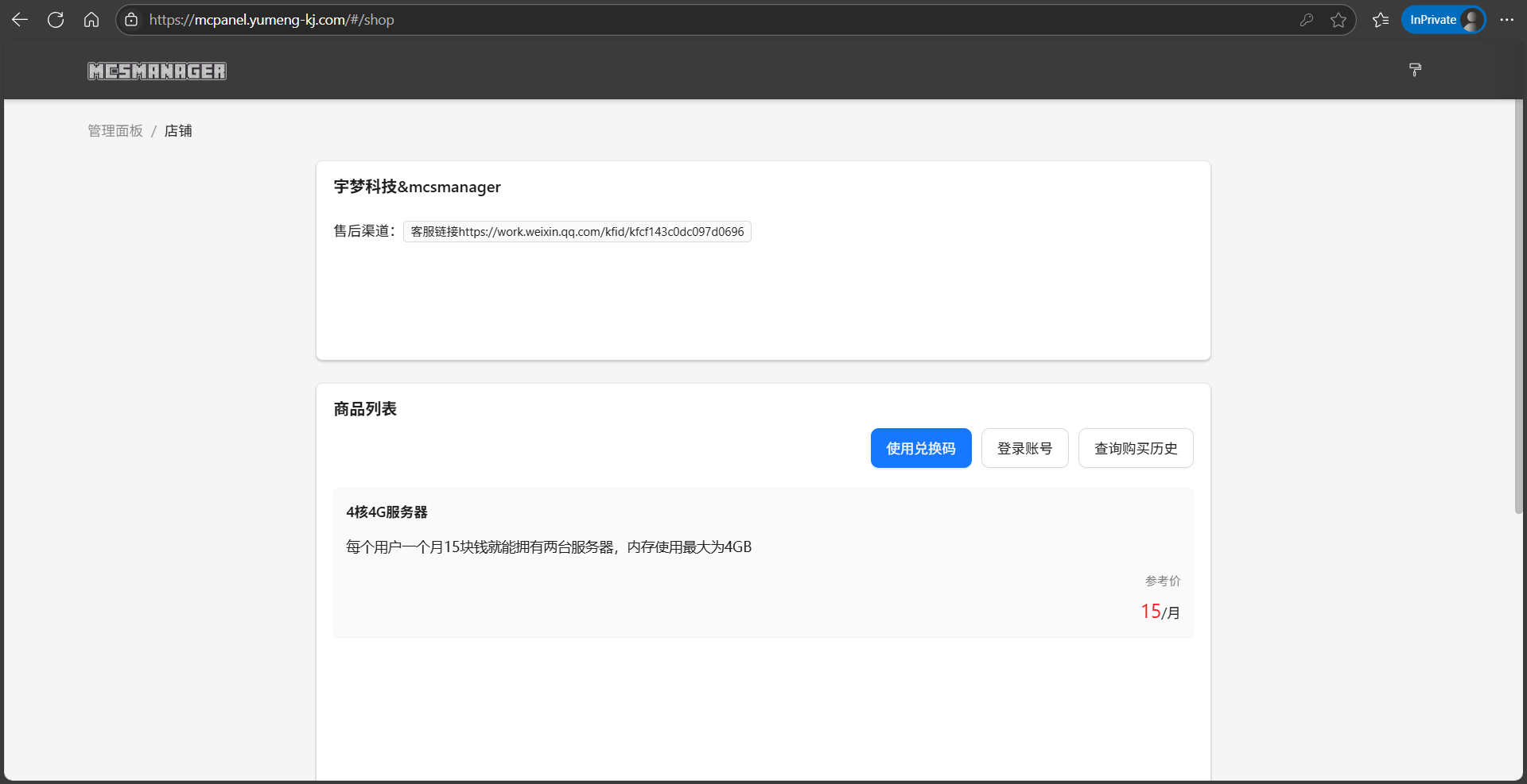 官方网址:https://mcpanel.yumeng-kj.com/